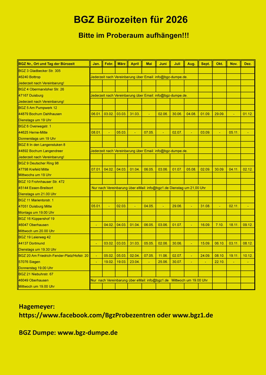 BGZ Bürozeiten 2026